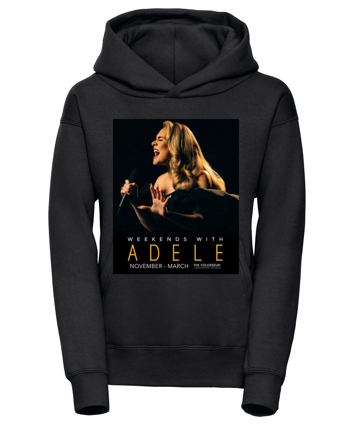Black Hoodie Weekend with Adele Las Vegas and the option for Adele Wording across the back S 36/38" M 38/40" L 40/42" XL 42/44" 2XL 44/46" 3XL* 46/48" 4XL* 48/50"